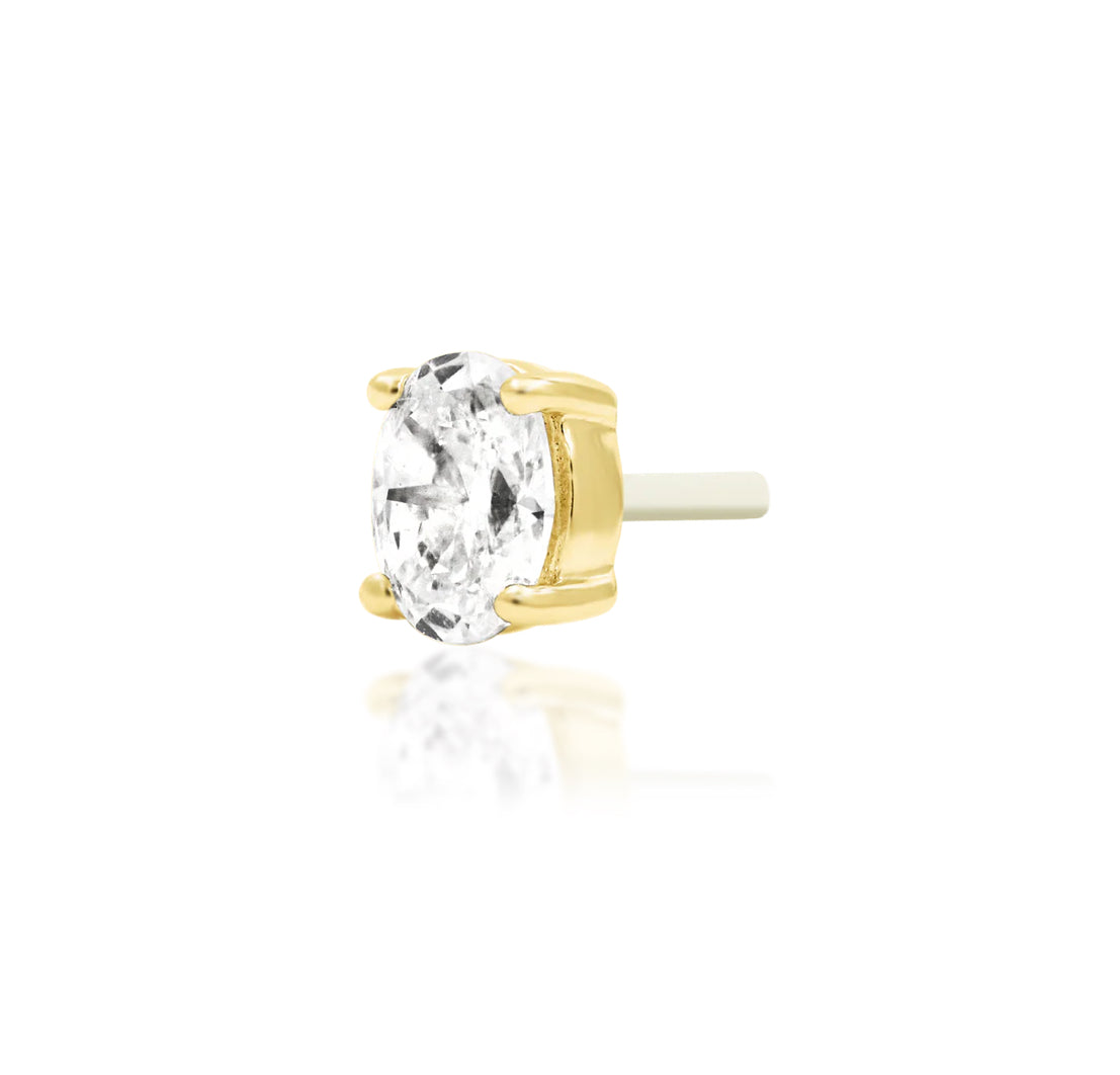 Diamond Oval by Junipurr Jewellery is a refined threadless decorative end crafted in solid 14k gold and set with a lab-grown VS1, F-colour oval diamond. Designed to deliver classic brilliance in a compact, elegant form, this piece offers understated luxury with maximum sparkle.