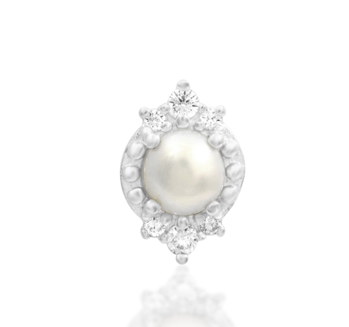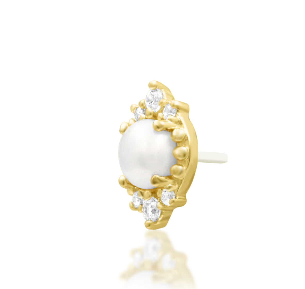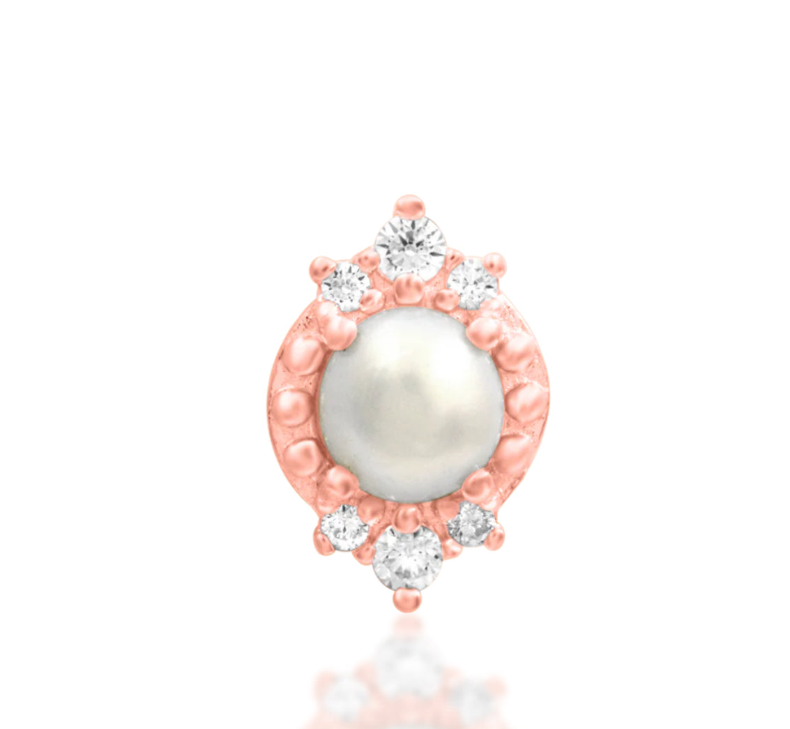 Junipurr Jewellery Margaret 14kt Gold Pearl CZ Conch Threadless Earring