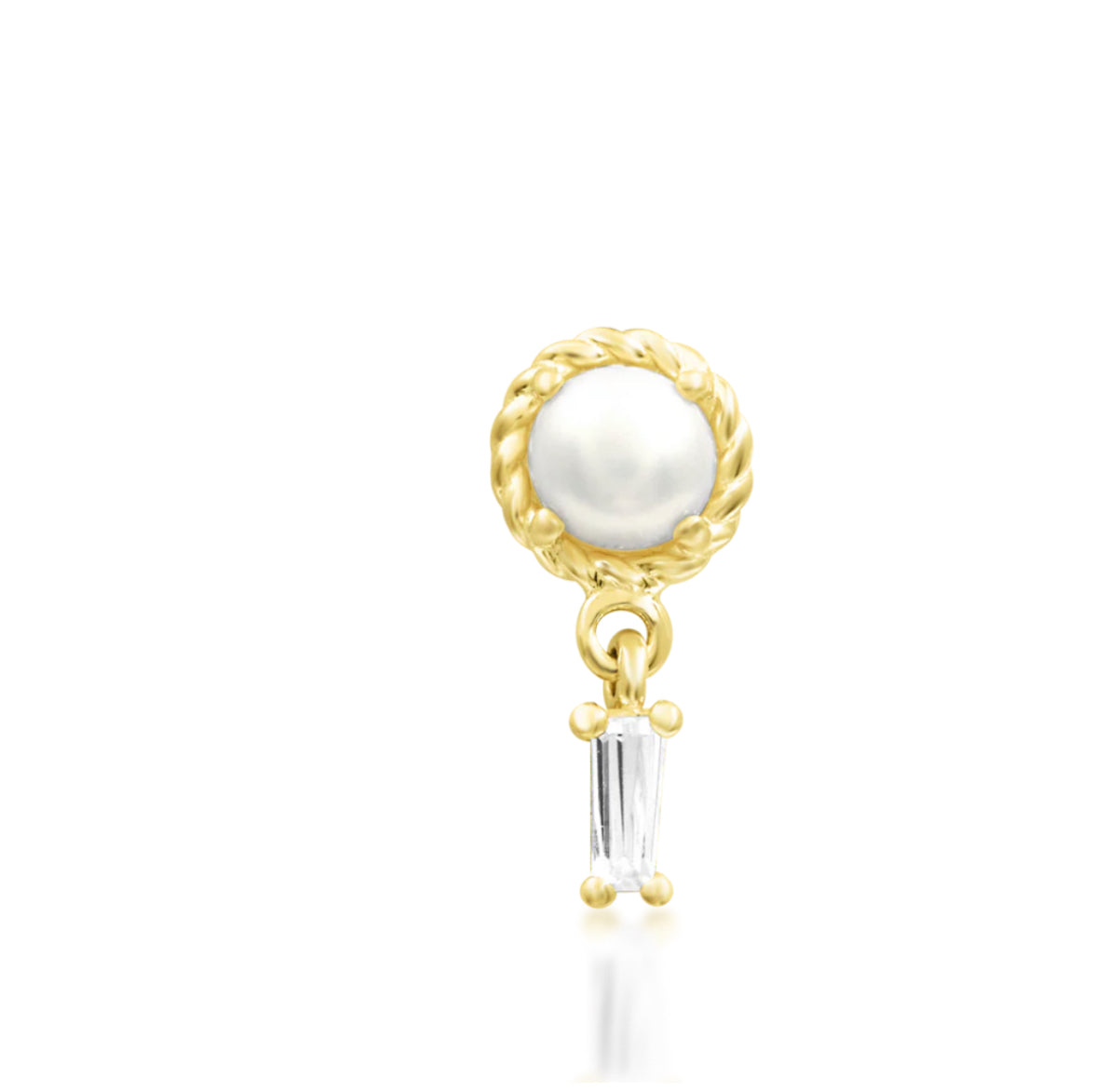 Junipurr Jewellery Millicent 14kt Gold Pearl CZ Helix Chain Charm Dangle Push Pin End