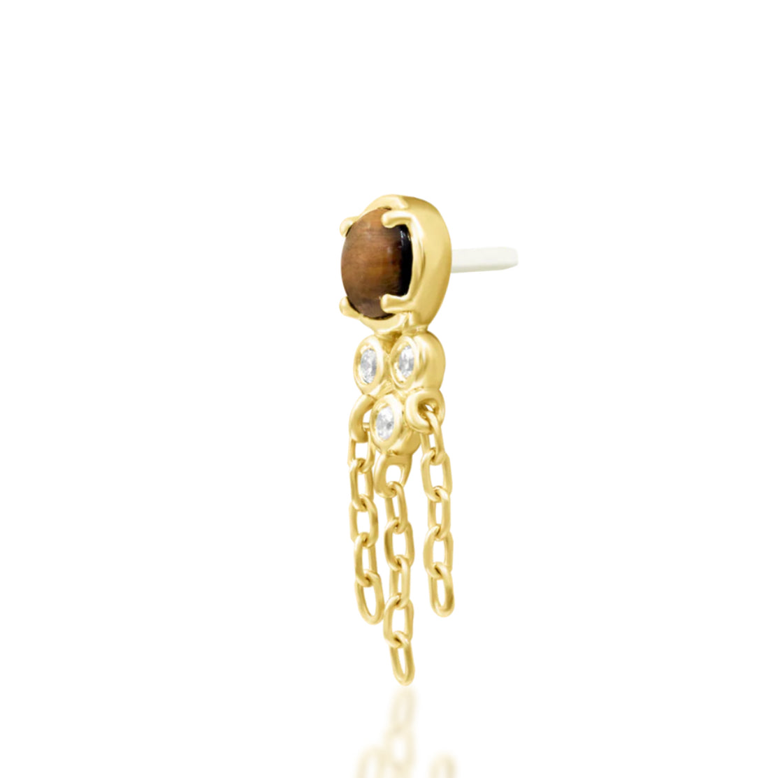 Junipurr Jewellery Zuri 14kt Gold CZ Tiger Eye Chain Helix Threadless Earring